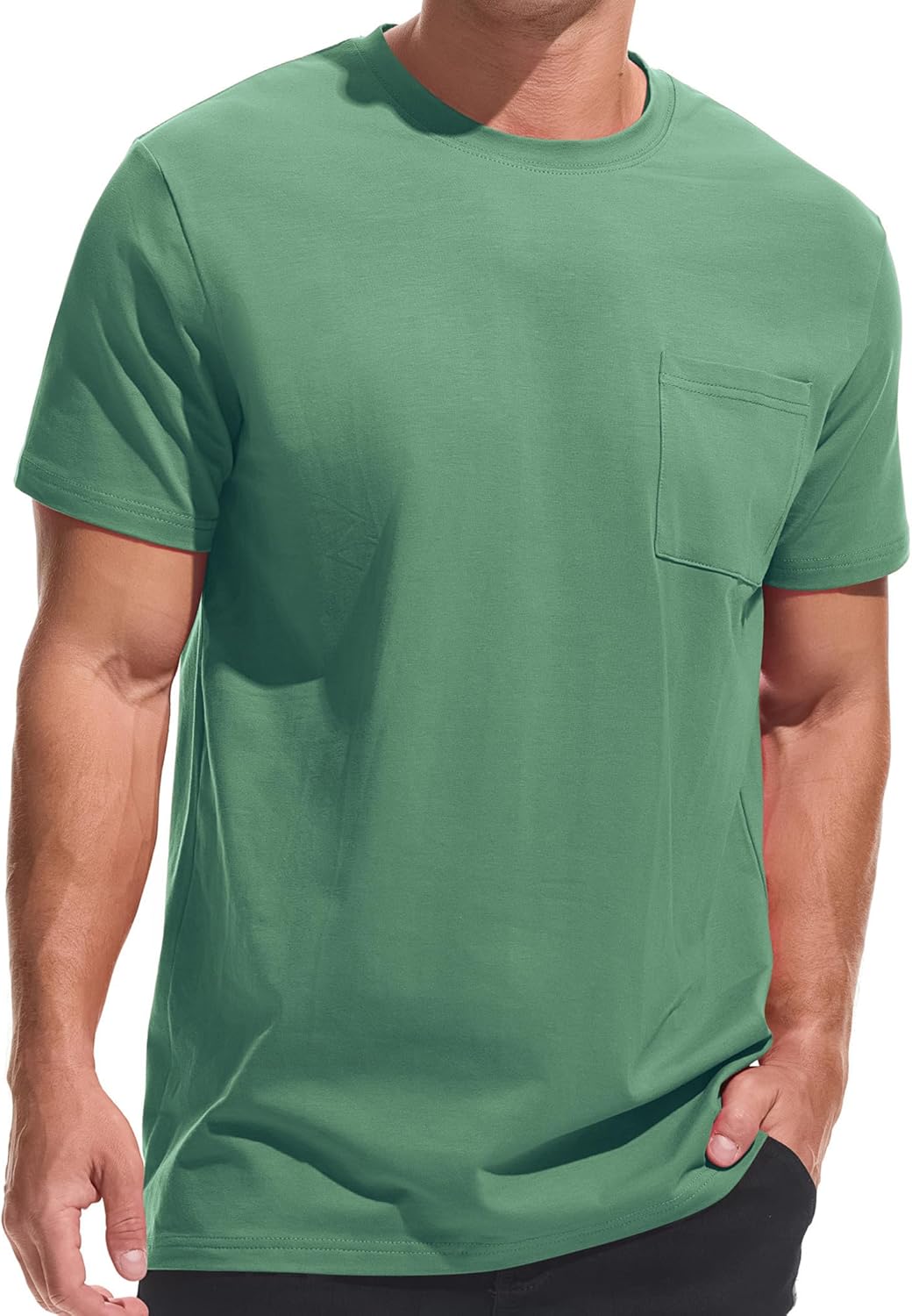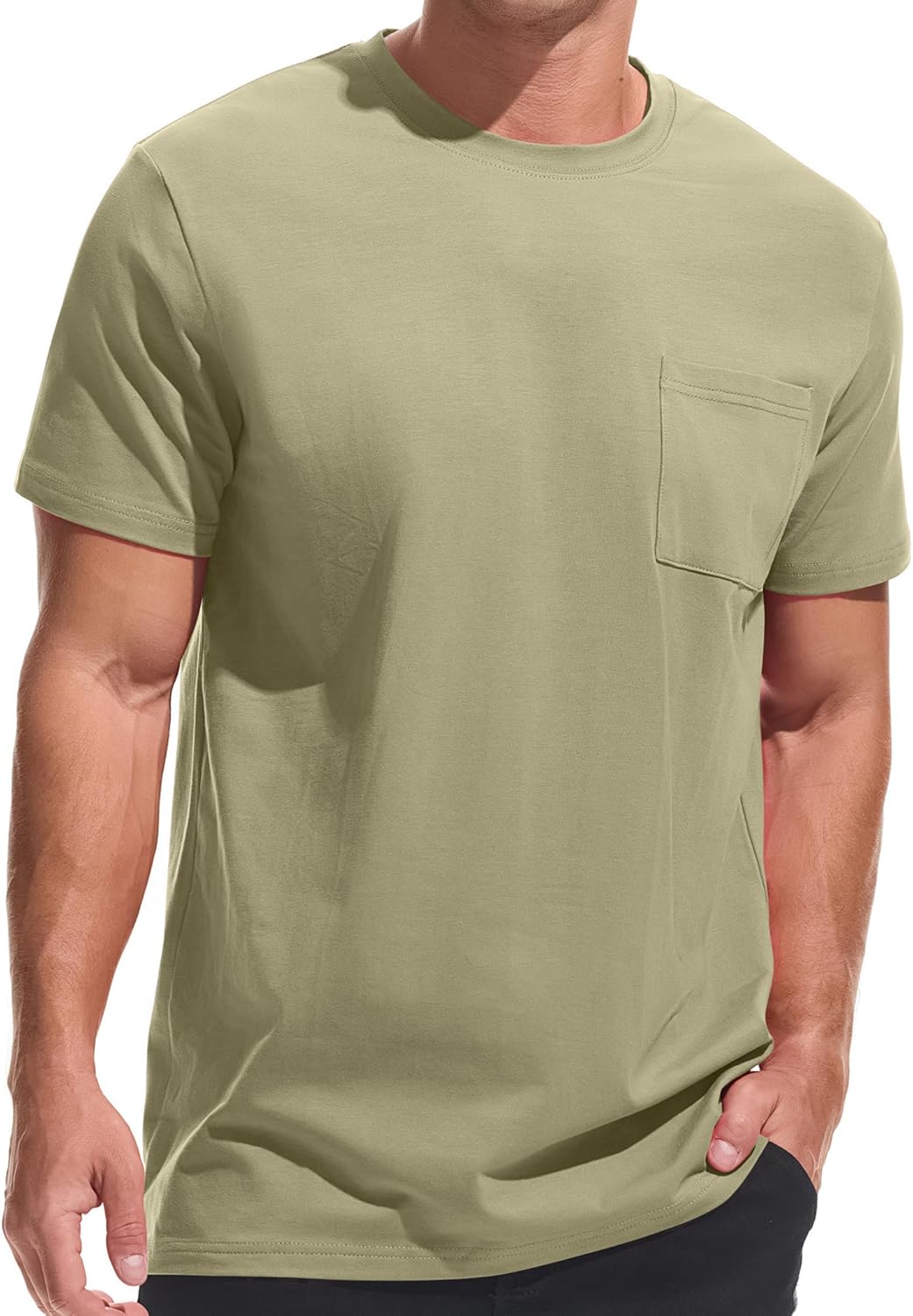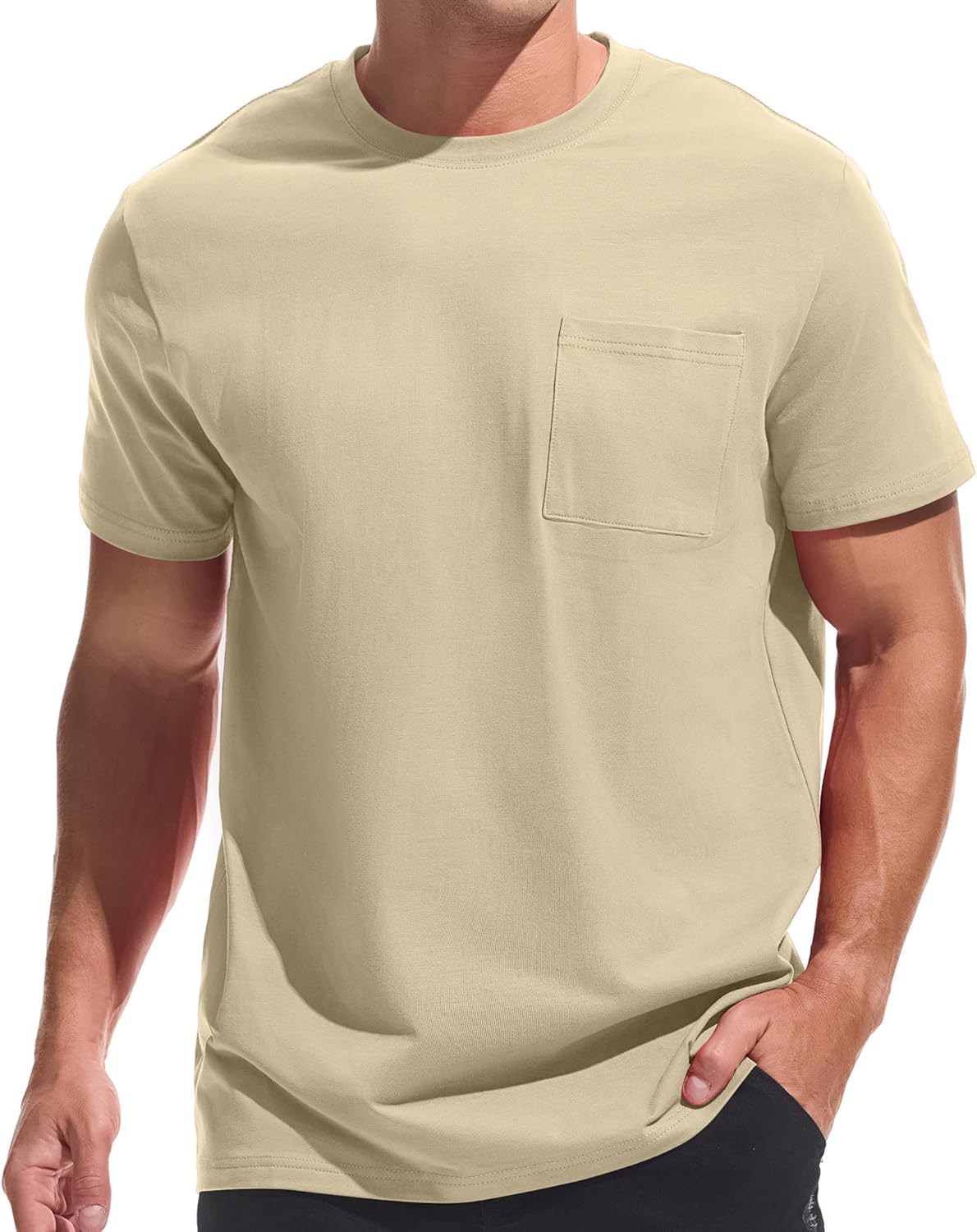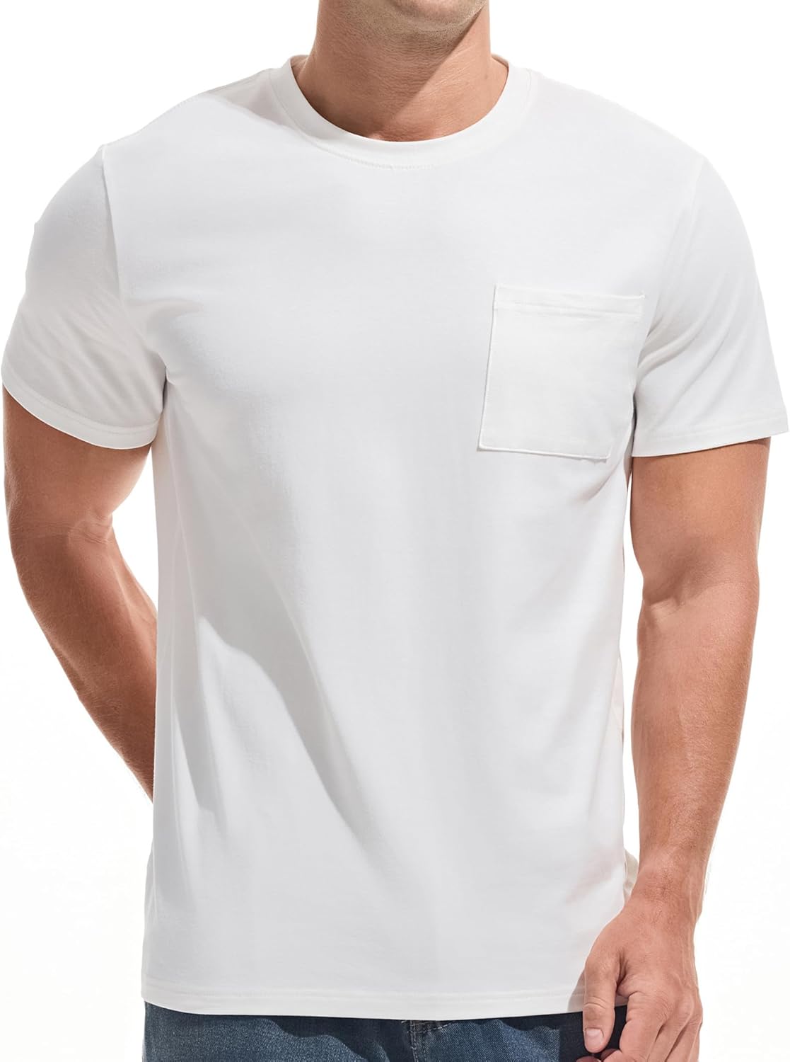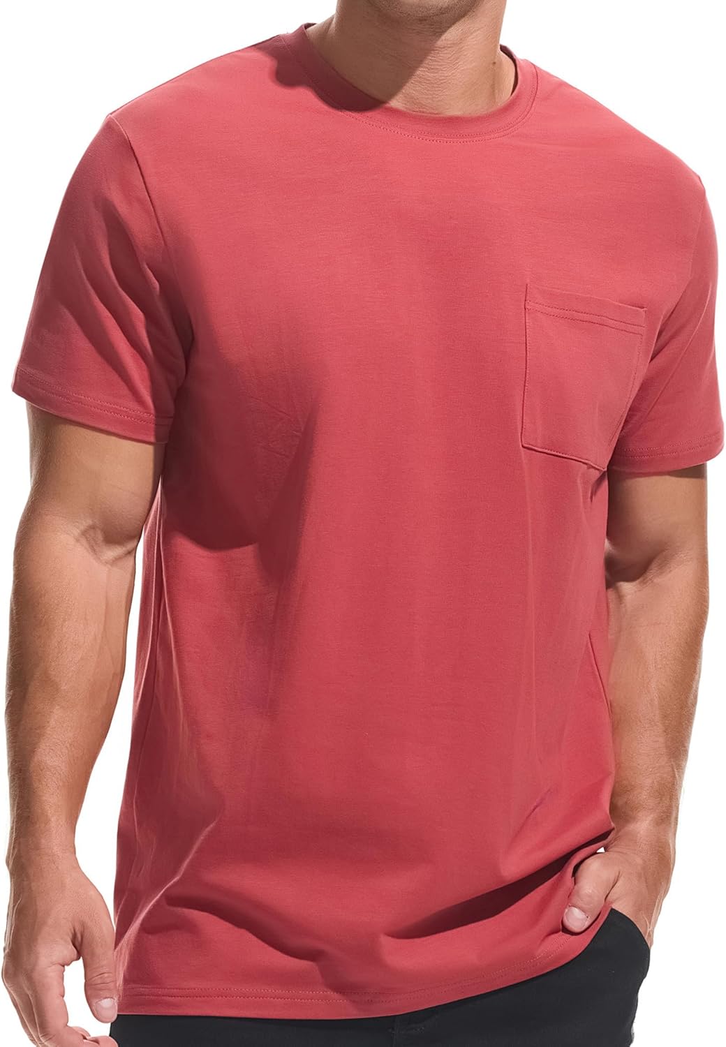 ![]() VEIISAR Men's Pocket T-Shirt – Mens Cotton Elastic Tees Soft Fitted Classic T…