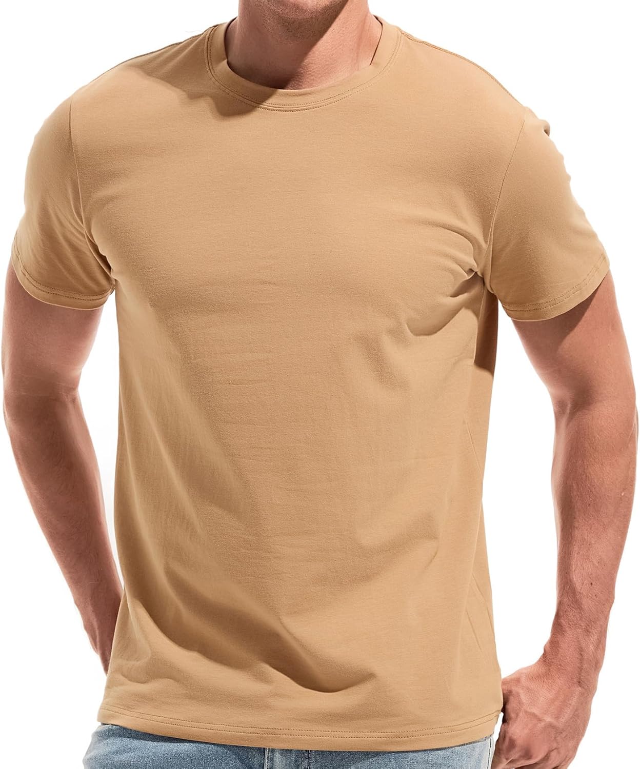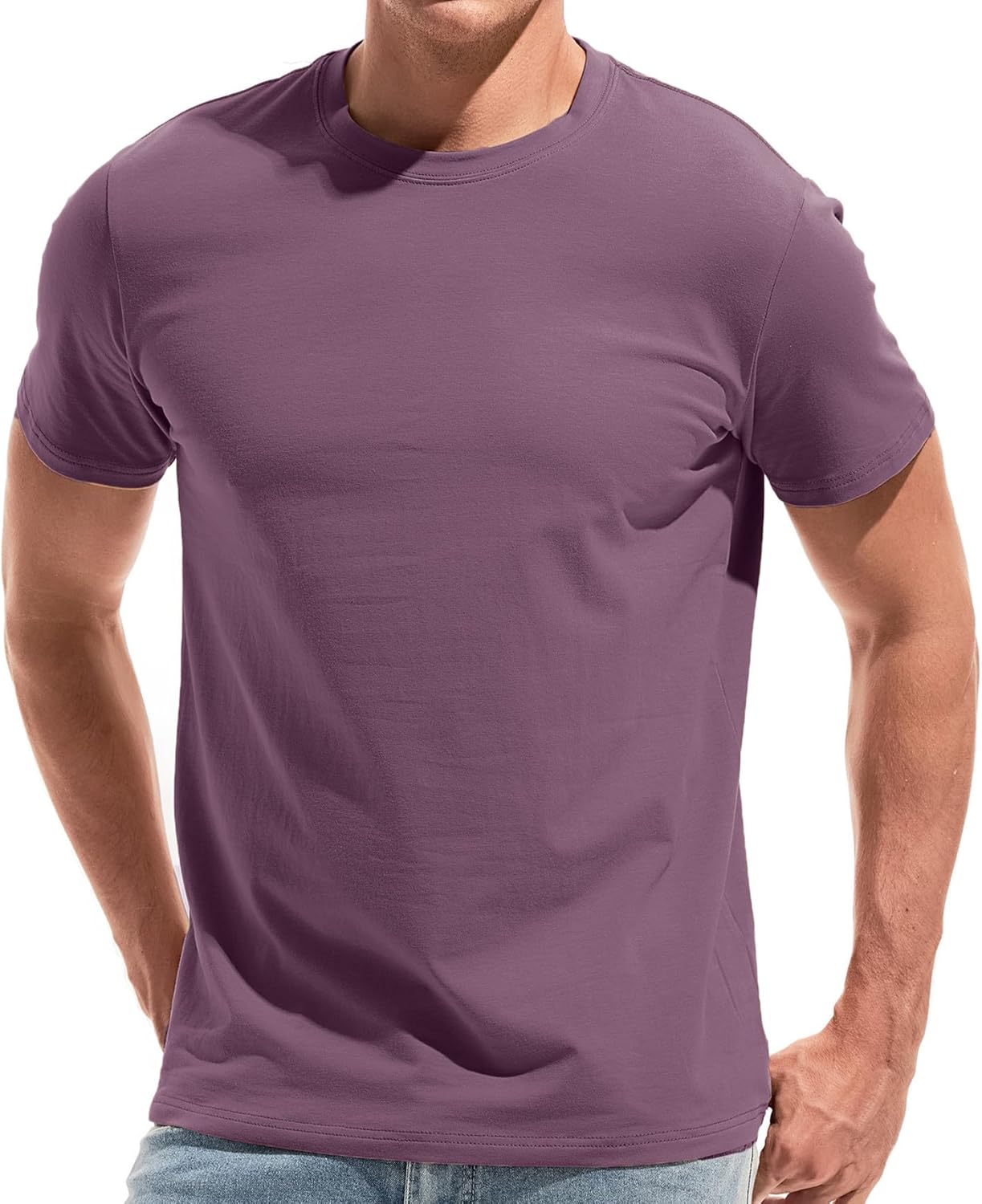VEIISAR Mens Crew Neck Soft Fitted Elastic T shirt