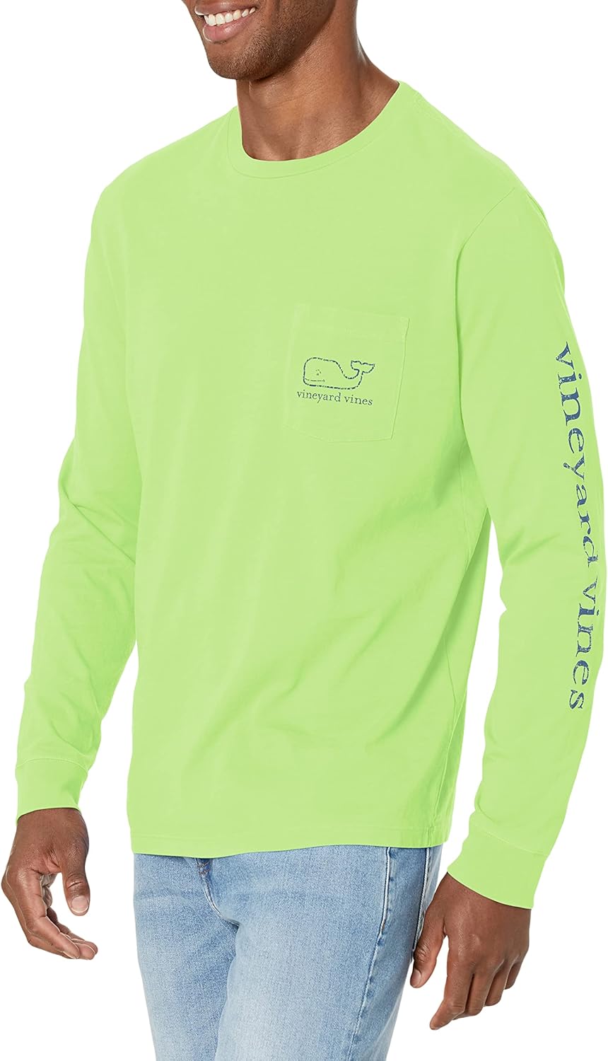 vineyard vines Men’s Long-Sleeve Neon Garment Dyed Vintage Whale Pocket Tee