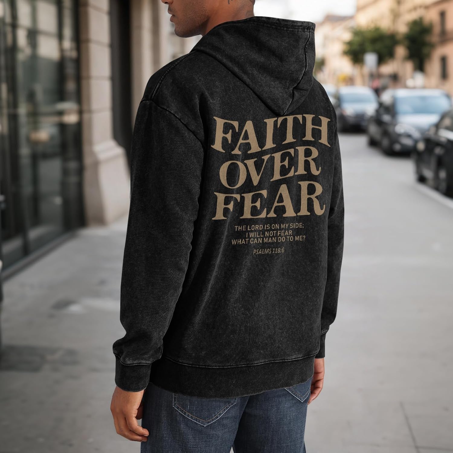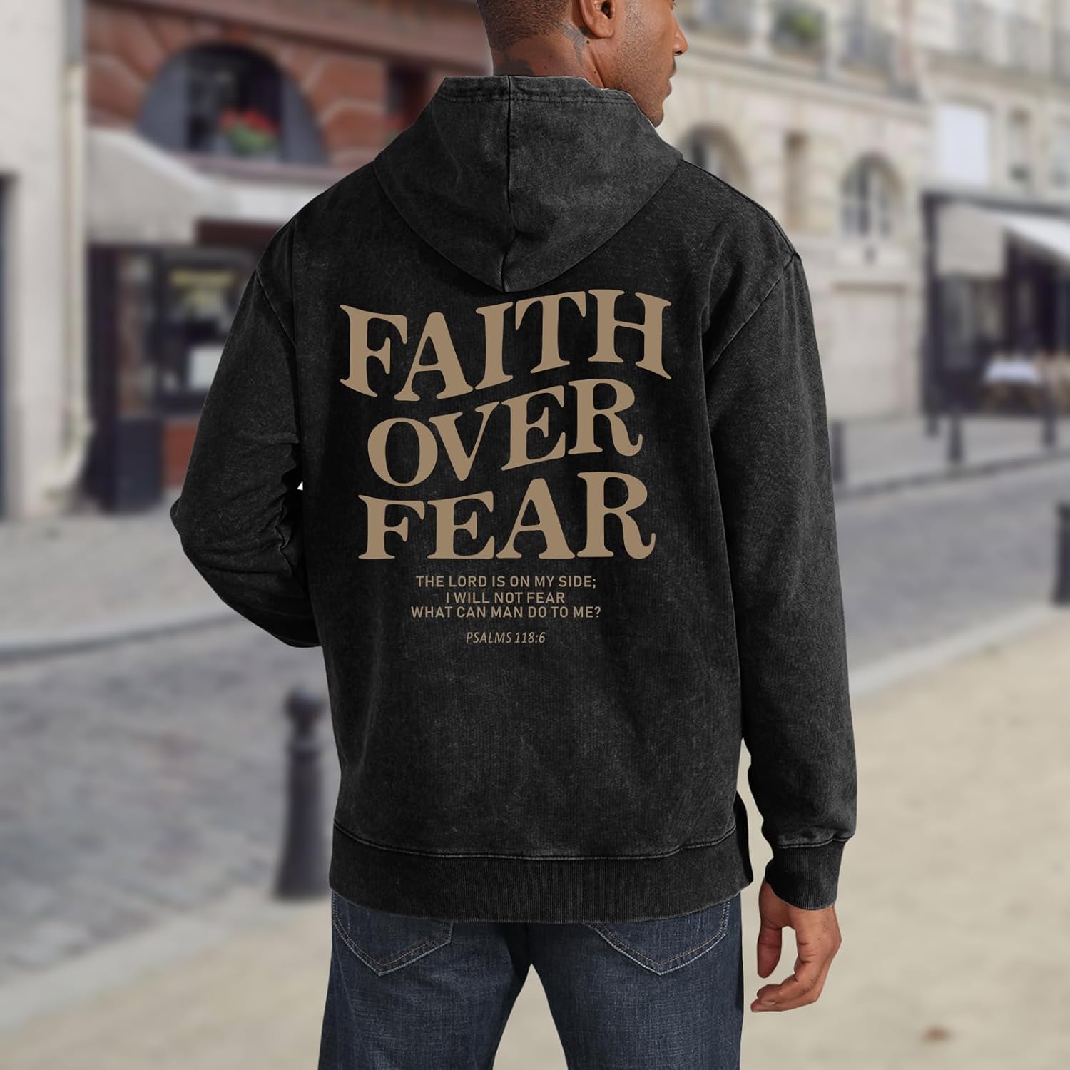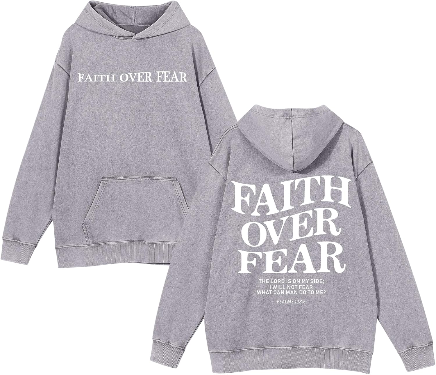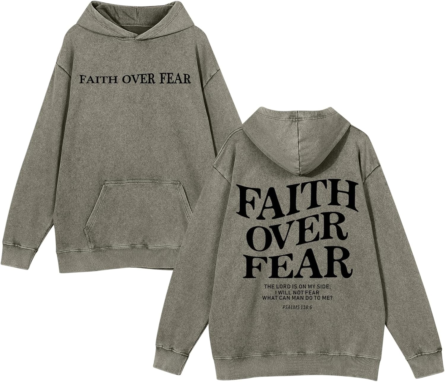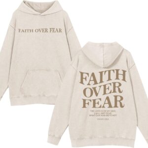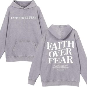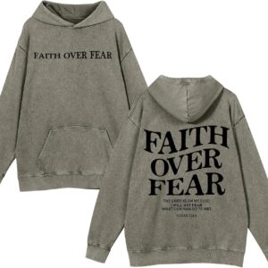 Weetiotio Christian Faith Over Fear Hoodies for Men Jesus Religious Graphic Sweatshirt Bible Verse Acid Wash Pullover Hoodie