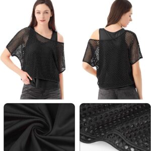 WILDPARTY Women Casual Sexy 80s Costumes Fishnet Neon Off Shoulder T-Shirt Two Pieces