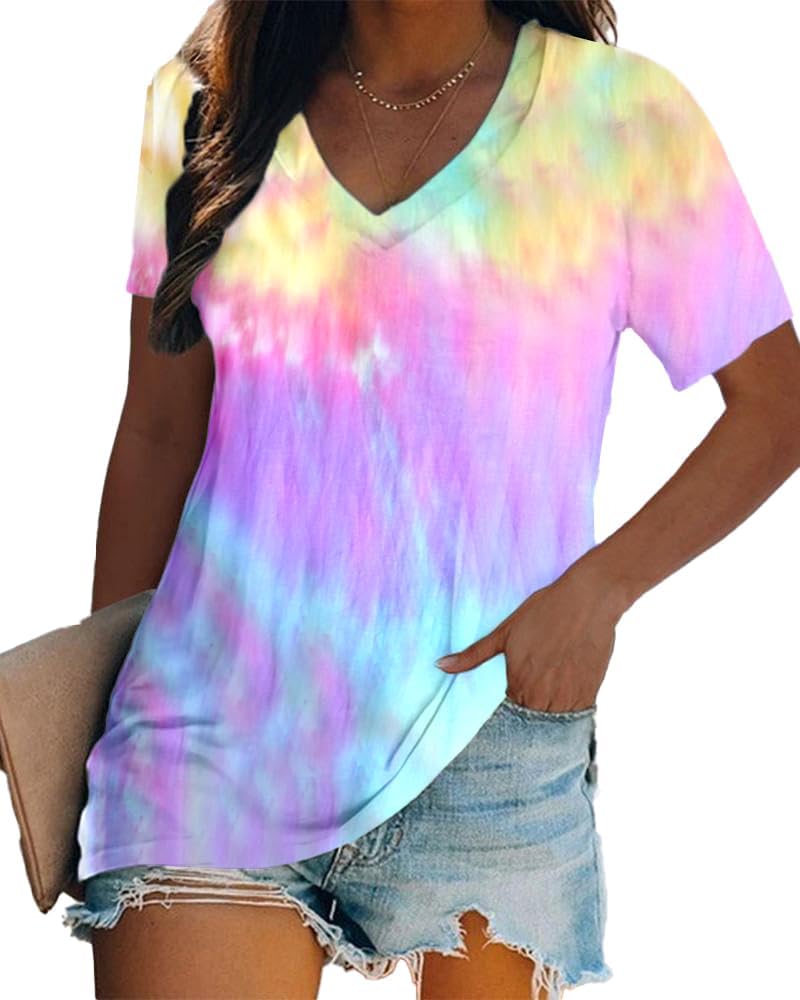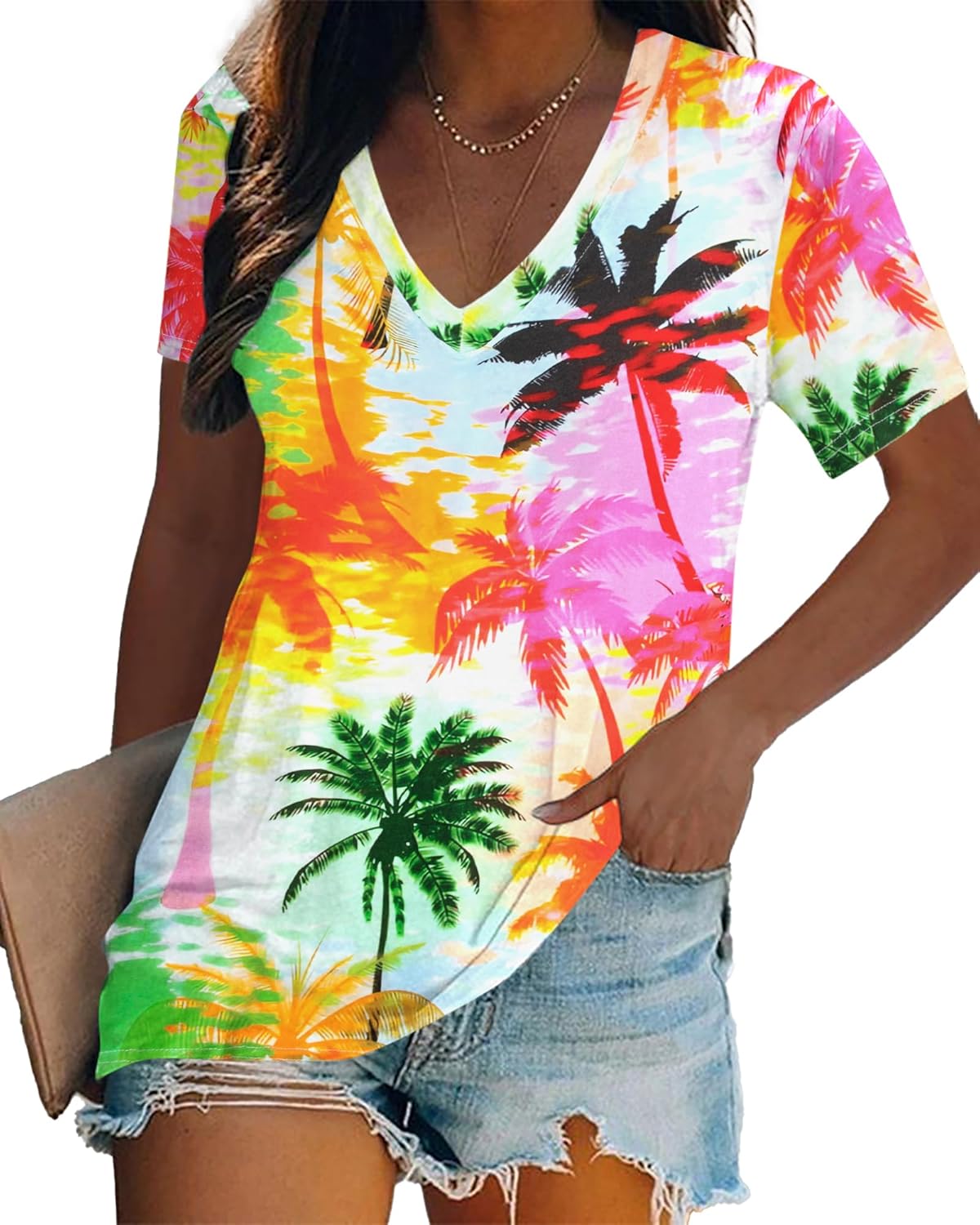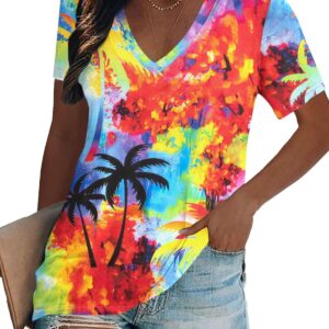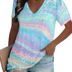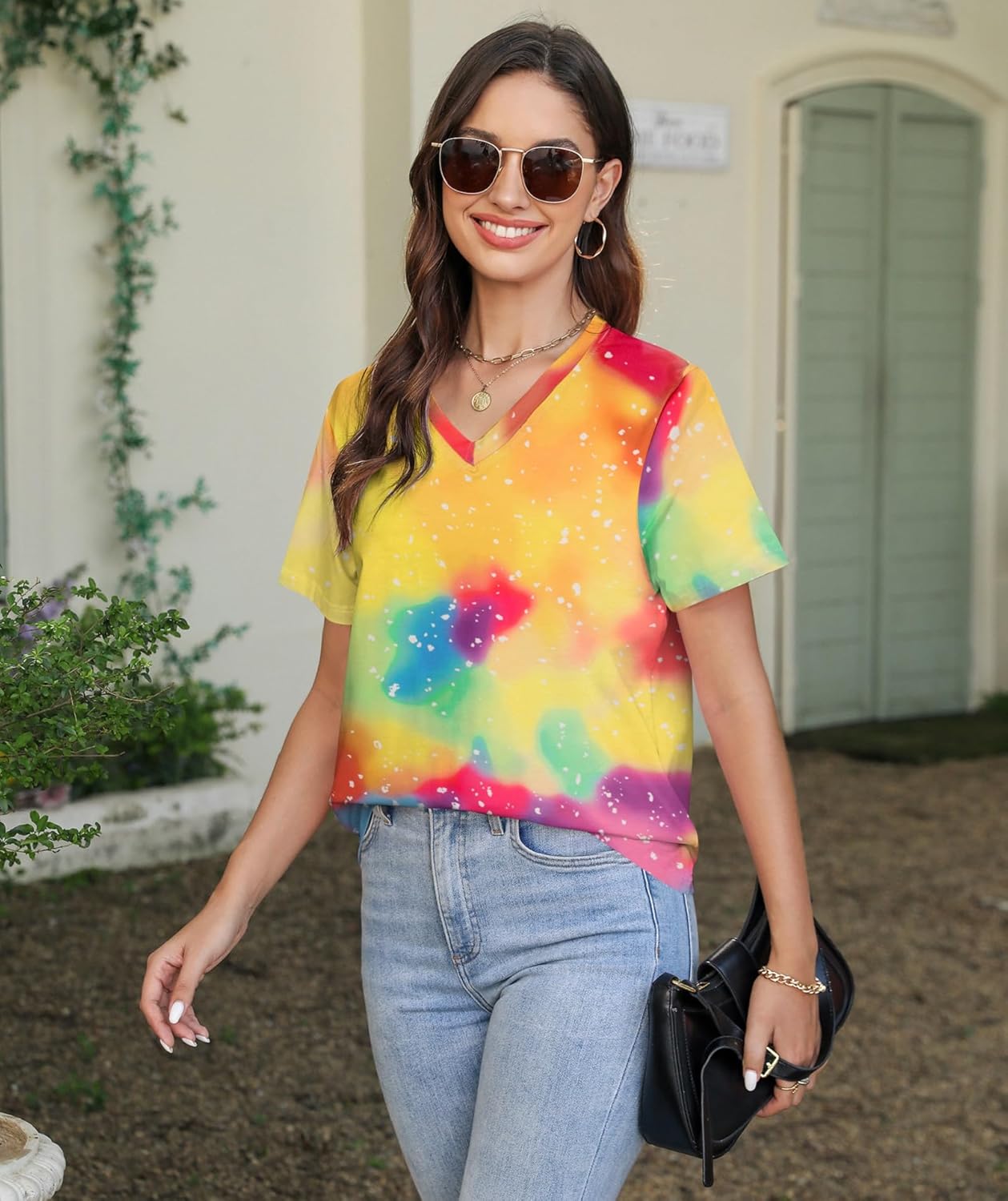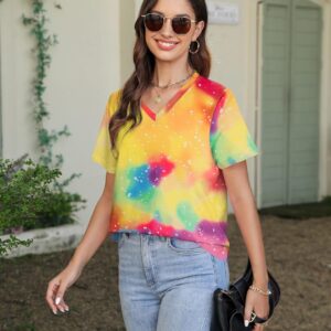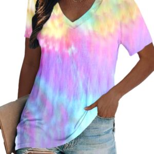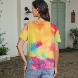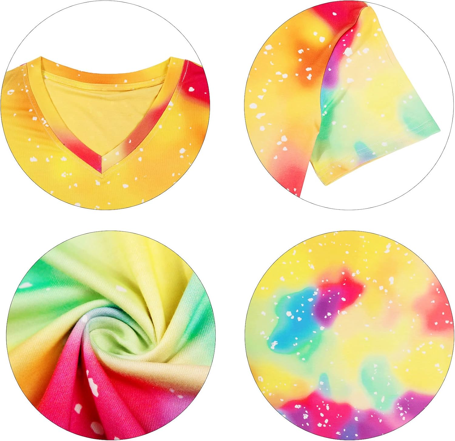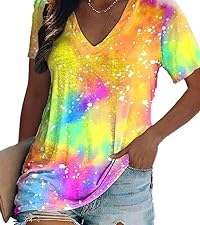 Women Neon Shirts Summer Vintage Tie Dye Tunic Tops Casual Short Sleeve Blouse