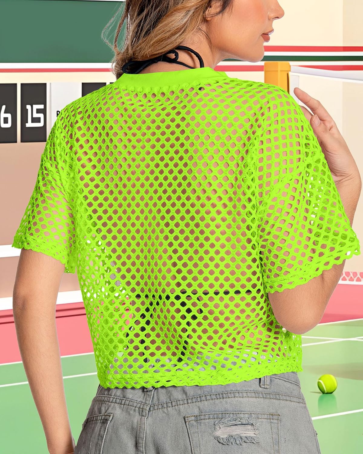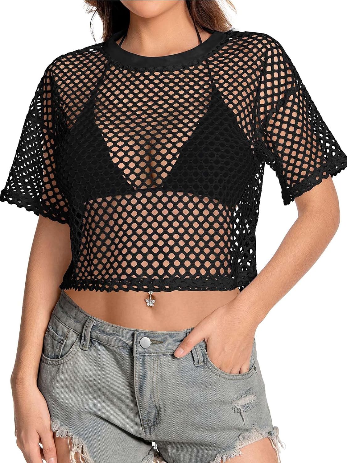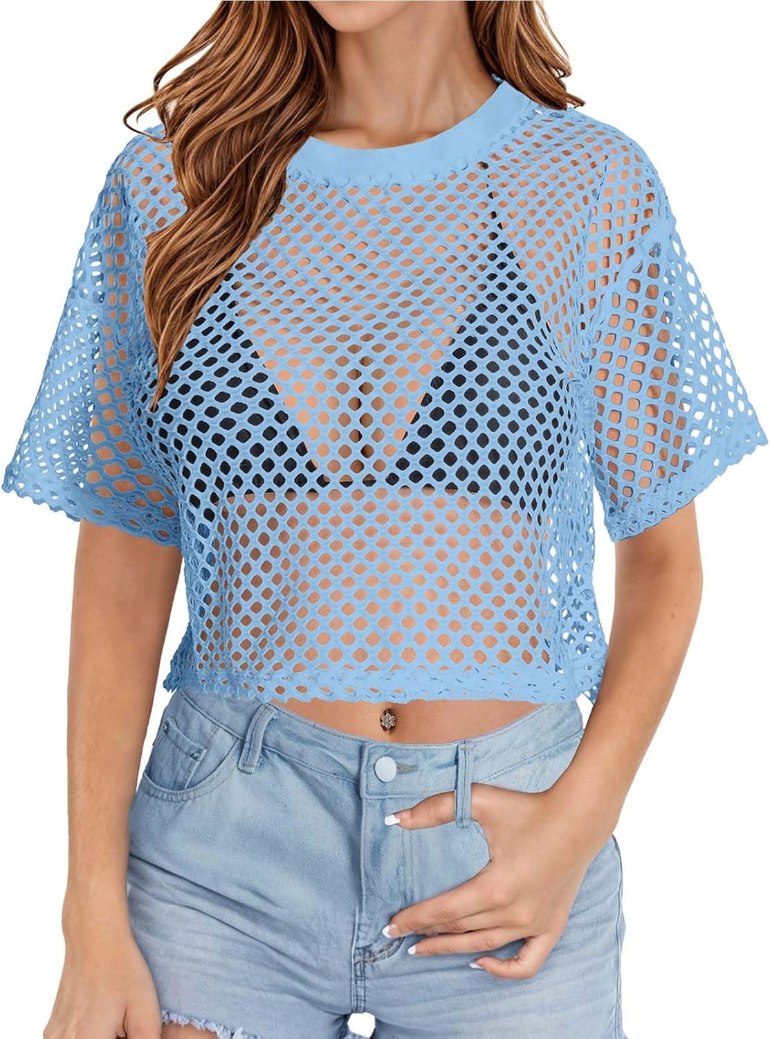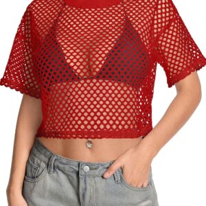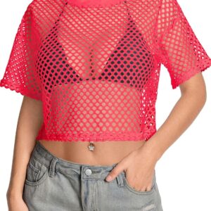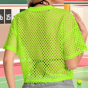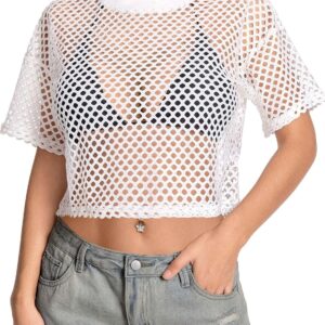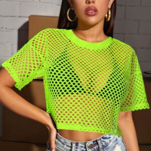 Women’s Mesh Top Fishnet T Shirts Sheer Loose Short Sleeve See Through Crop Tops