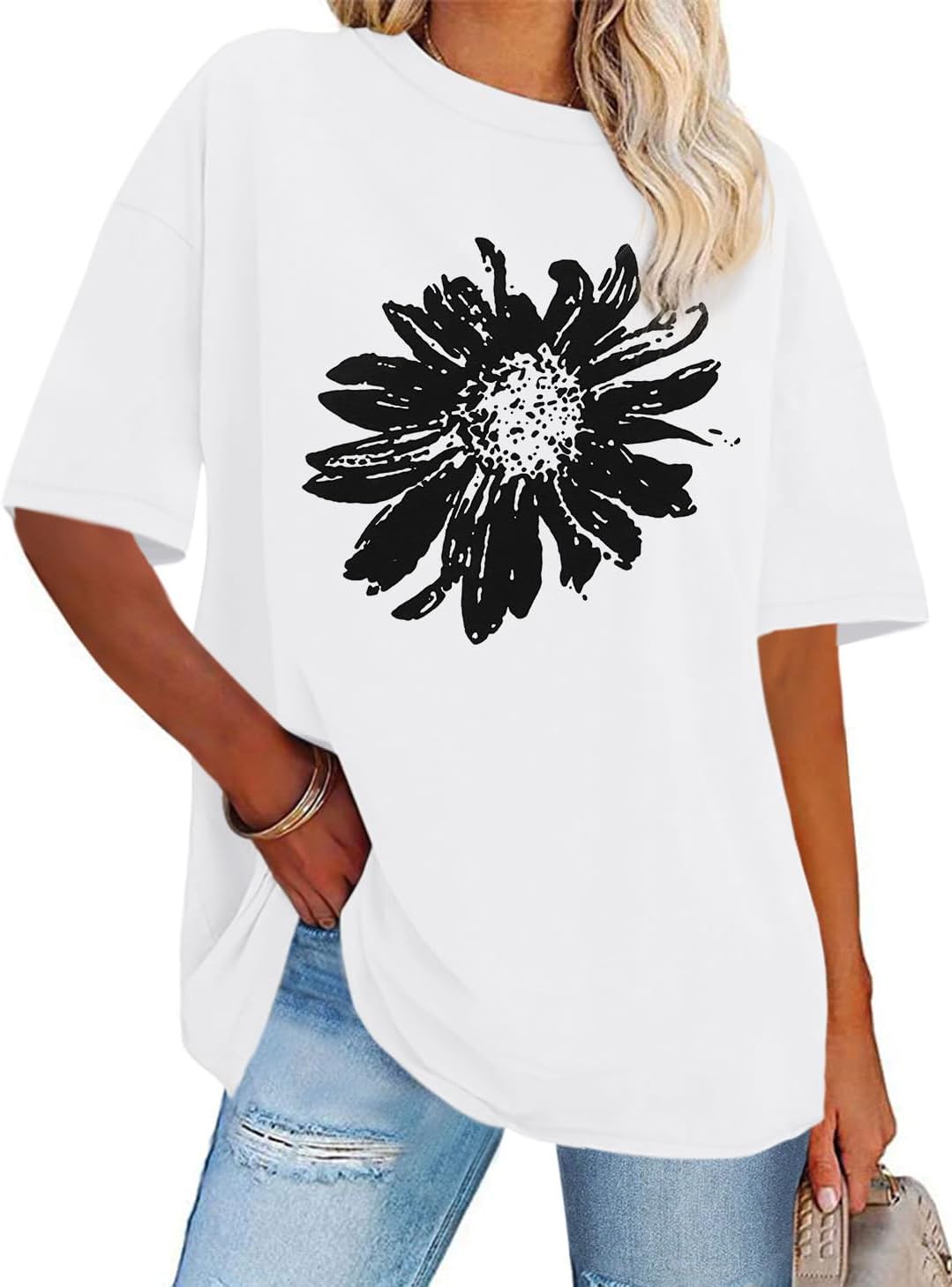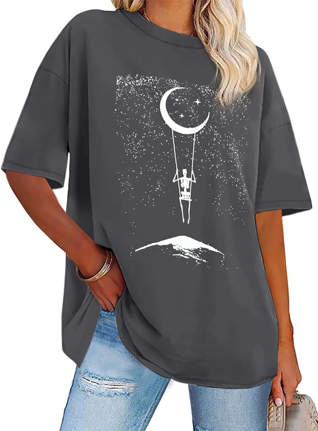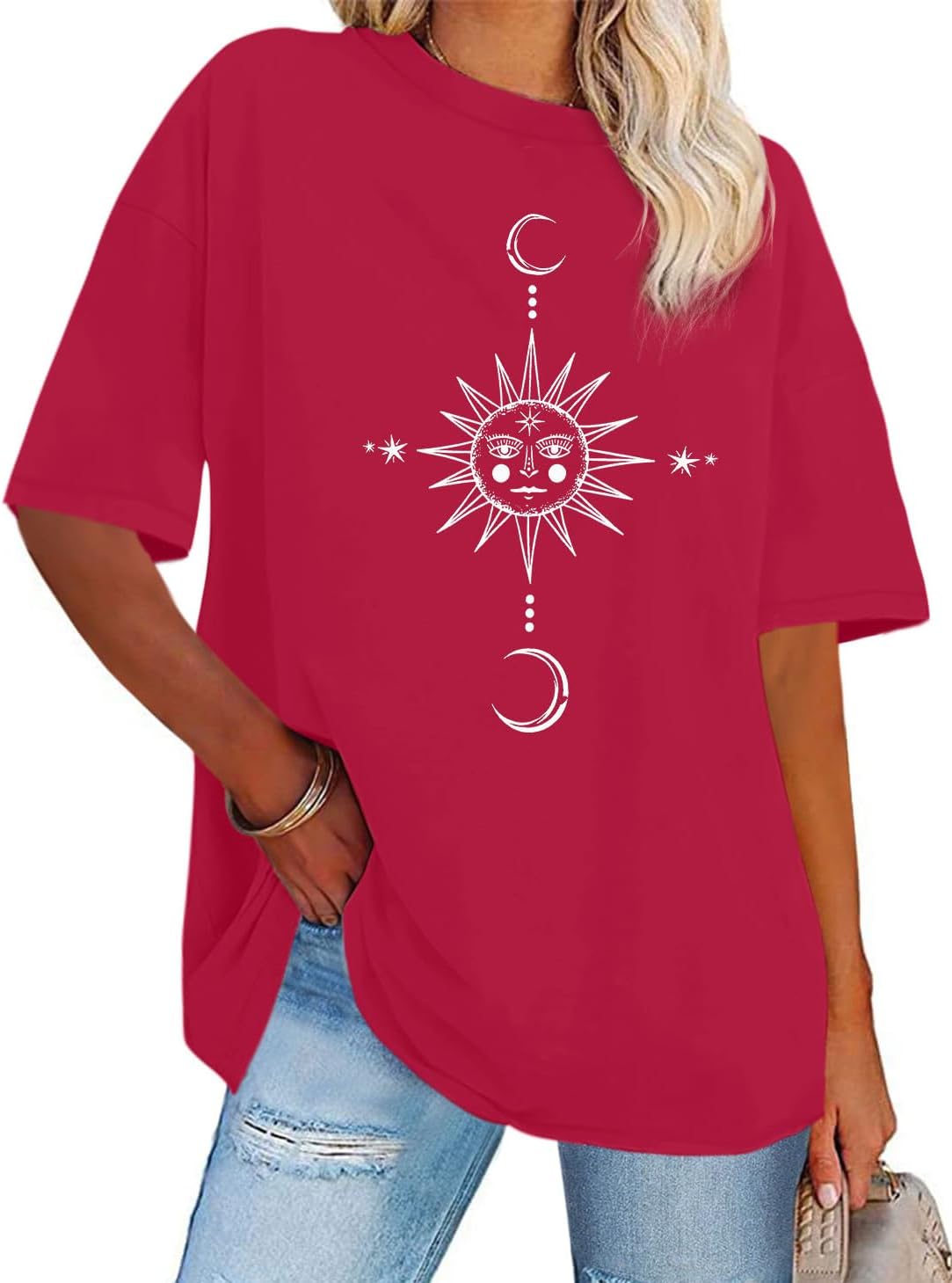 Womens Oversized Tshirt Graphic Tees Crew Neck Summer Short Sleeve Loose Fit Tops