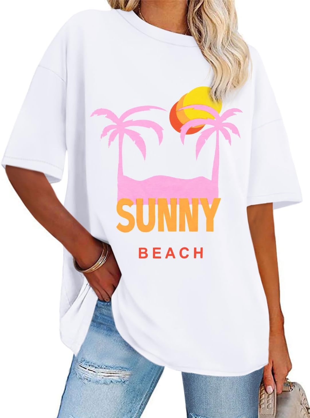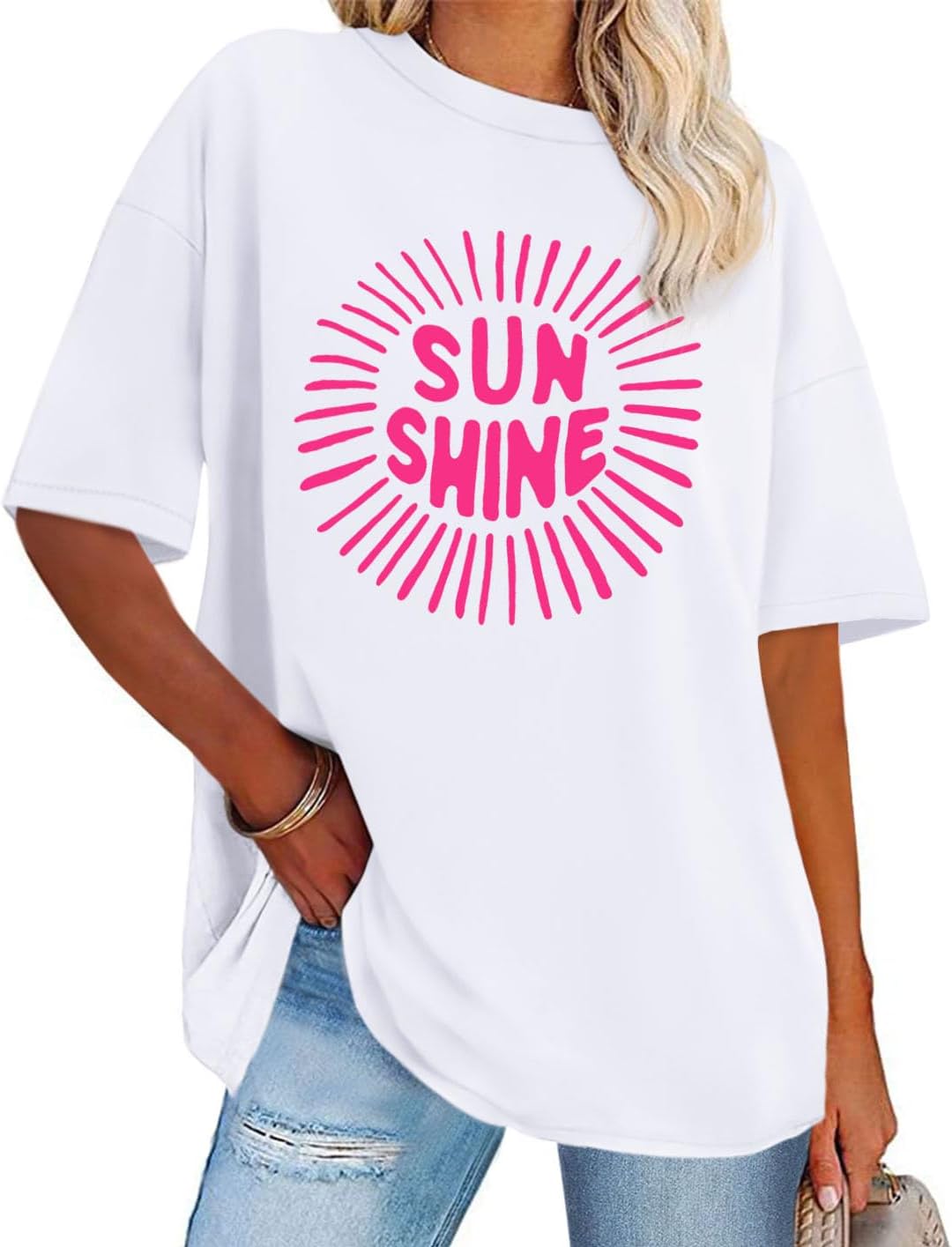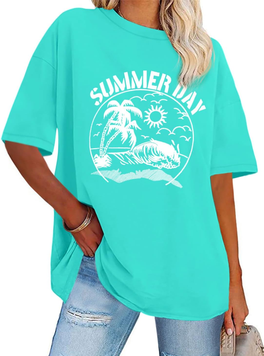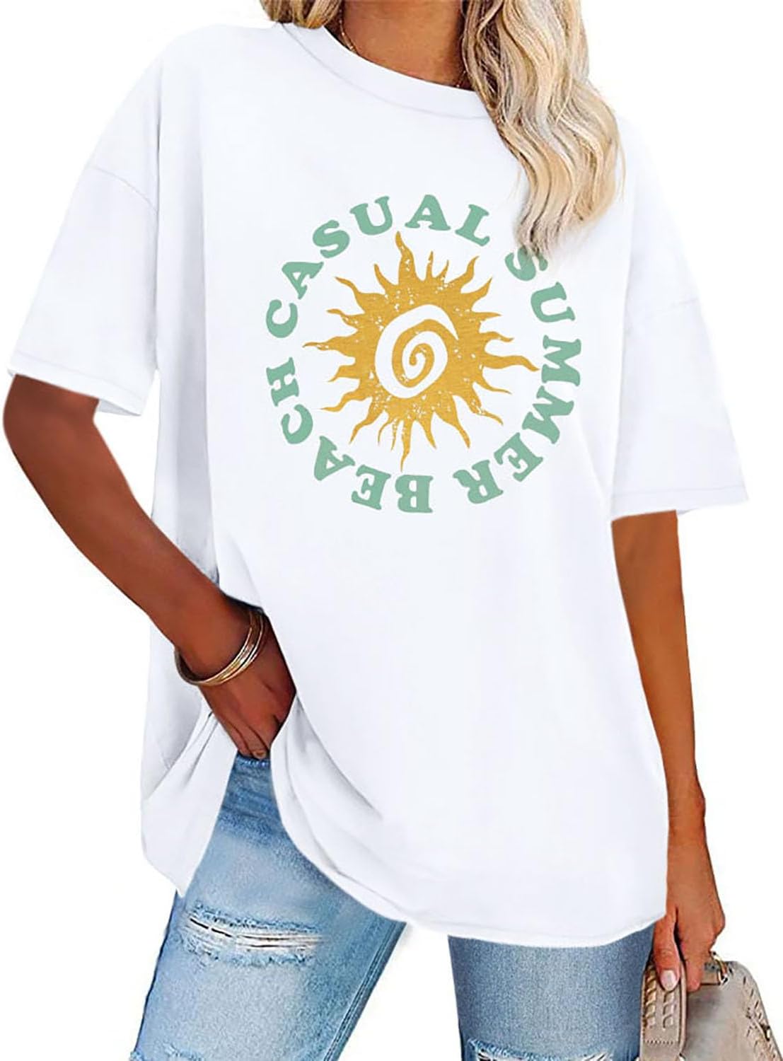 Womens Oversized Tshirt Graphic Tees Crew Neck Summer Short Sleeve Loose Fit Tops
