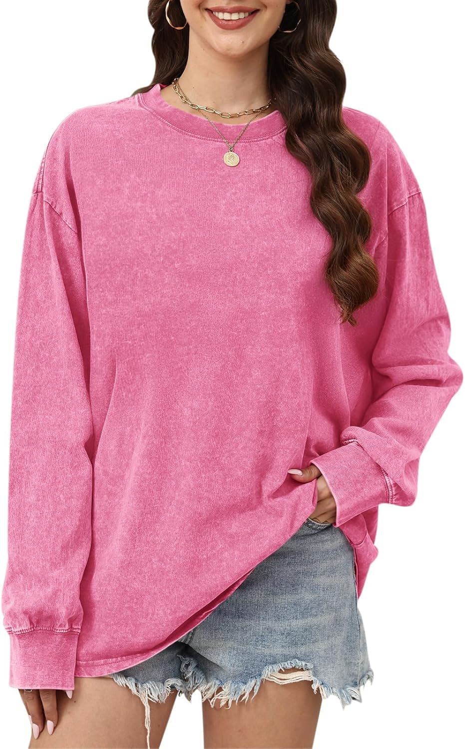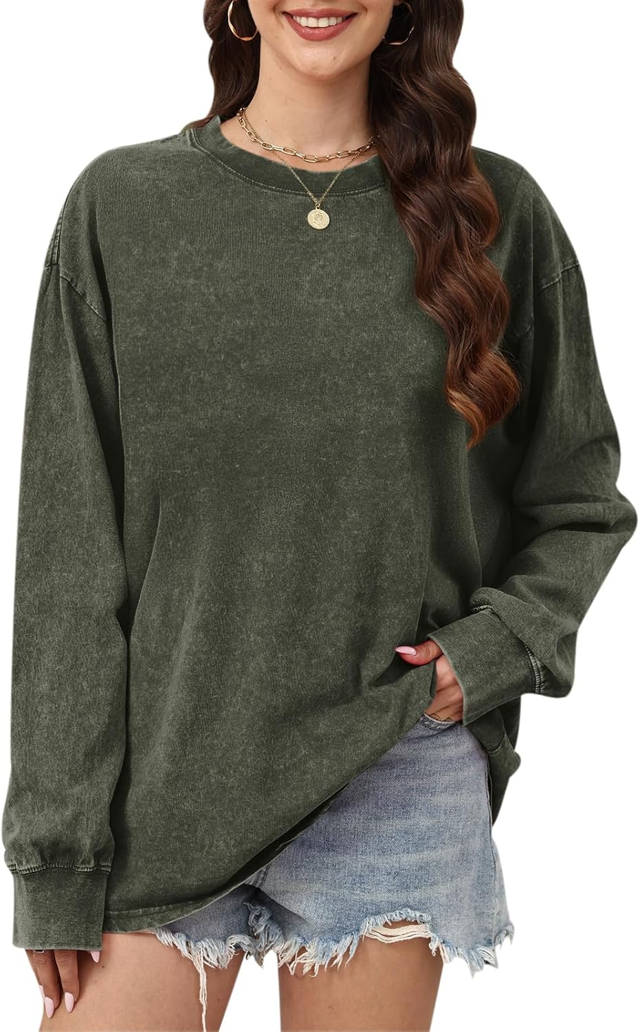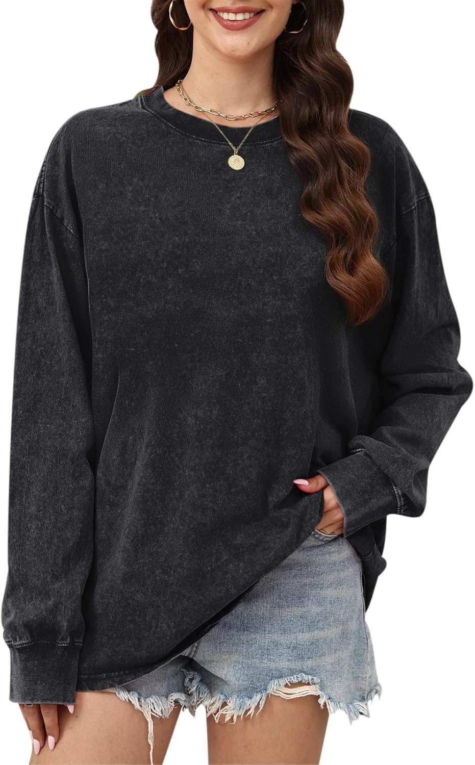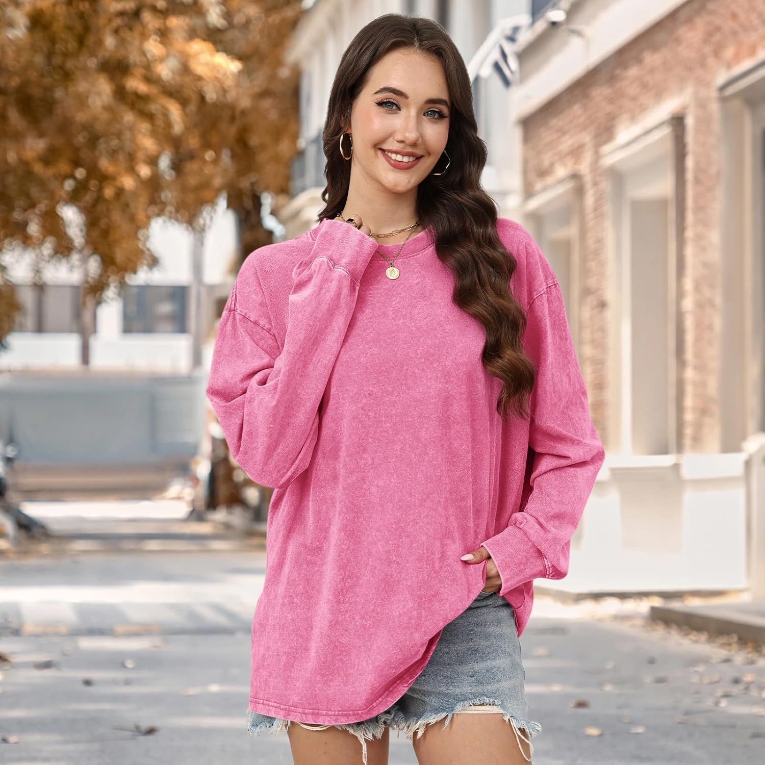 Wrenpies Vintage Acid Wash Long Sleeve Tops for Women