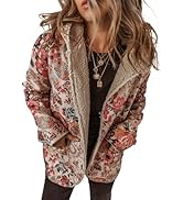YIGAMA Women's Winter Plush Hooded Jacket Retro Floral Prints Fleece Lined Open Front Coat with Big Pockets quantity